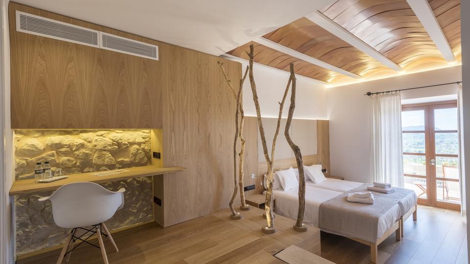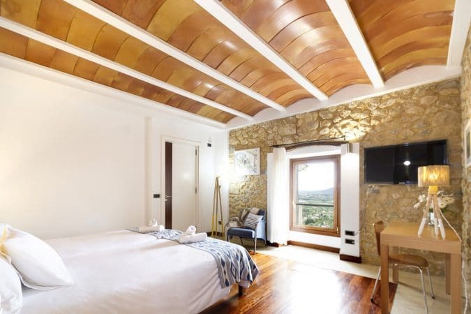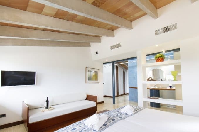 Nuestro edificio principal cuenta con 6 estancias abiertas al sur y con vistas espectaculares sobre la isla de Mallorca. Mientas que nuestro edificio secundario dispone de 4 modernas habitaciones integradas en nuestro jardín.